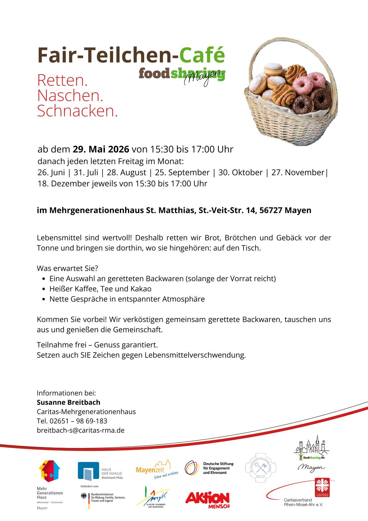 Kommen Sie vorbei! Wir verköstigen gemeinsam gerettete Backwaren, tauschen uns aus und genießen die Gemeinschaft.